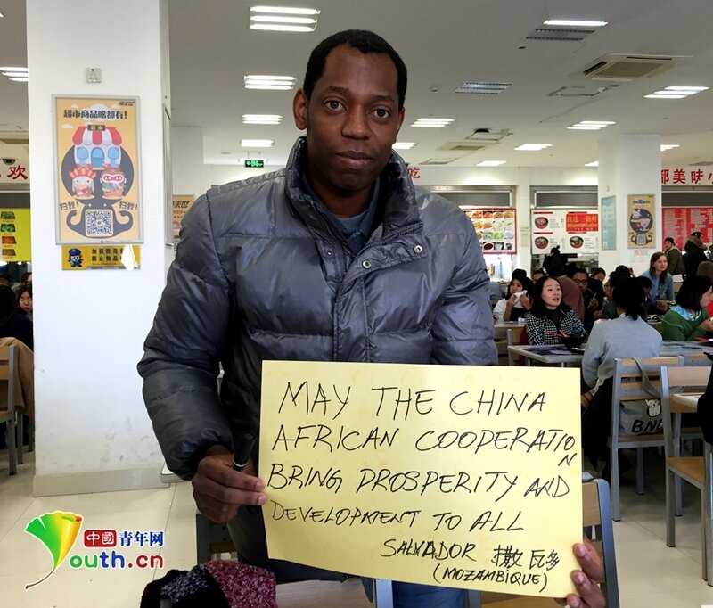来自莫桑比克的撒瓦多刚刚开始在北京的学习生活。记者问他知不知道习近平主席正在非洲访问时,他很快反应过来,点头、微笑。他说:“希望中非合作,给双方带来繁荣和发展。”中国青年网实习记者 解轶鹏 摄