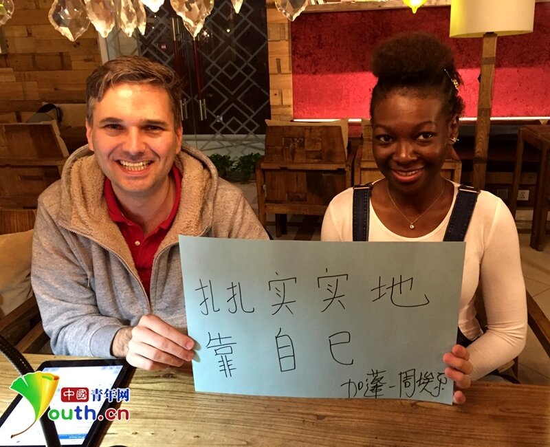安德烈来自南非,刚到中国几个月的他还不能说流利的汉语。提到中非关系,他说中非关系一直很好,也很高兴这次习主席能够访问南非。看到一起的周埃乐能够书写汉字,很是羡慕,“我要好好学习中文了。”中国青年网实习记者 解轶鹏 摄