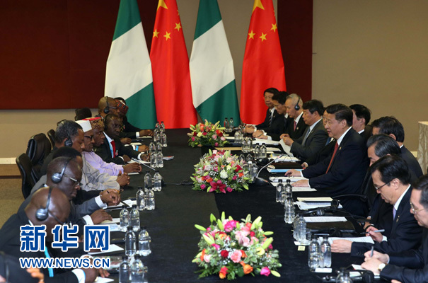 习近平指出,中方高度重视发展中尼关系,愿同尼方一道努力,为促进两国友好互利合作全面快速发展规划新蓝图,注入新动力。双方要充分发挥传统友好和经济互补性强两大优势,增进政治互信,密切各领域各层次友好往来;深化在基础设施建设、工业园区、产业对接、资源开发利用、加工制造业、有关行业产能、农业现代化等领域合作,帮助尼日利亚建立和完善自主工业体系。双方要密切安全和国际合作,就重大国际和地区问题保持沟通和协调,共同维护好中非等广大发展中国家的共同利益。