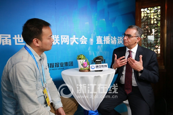 法迪·切哈德在浙江在线乌镇演播室接受记者采访