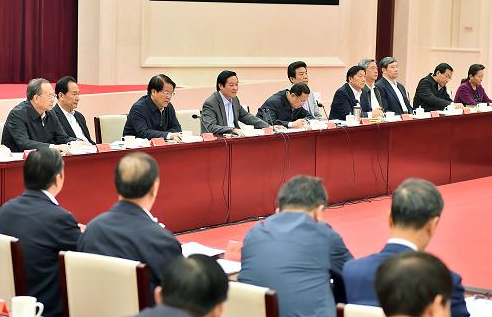 10月18日,中共中央政治局委员、中央书记处书记、中宣部部长刘奇葆在北京主持召开学习贯彻习近平总书记在文艺工作座谈会上的重要讲话精神工作会议。新华社记者 李涛 摄