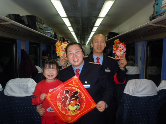 青岛客运段福州六组担当的青岛北—齐齐哈尔的K4688次旅客列车上,每位列车工作人员用温馨的服务,送异乡游子回家过年。