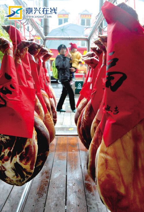 昨天,市区斜西街一家农产品店铺前,红福腊腿肉让年味扑面而来。