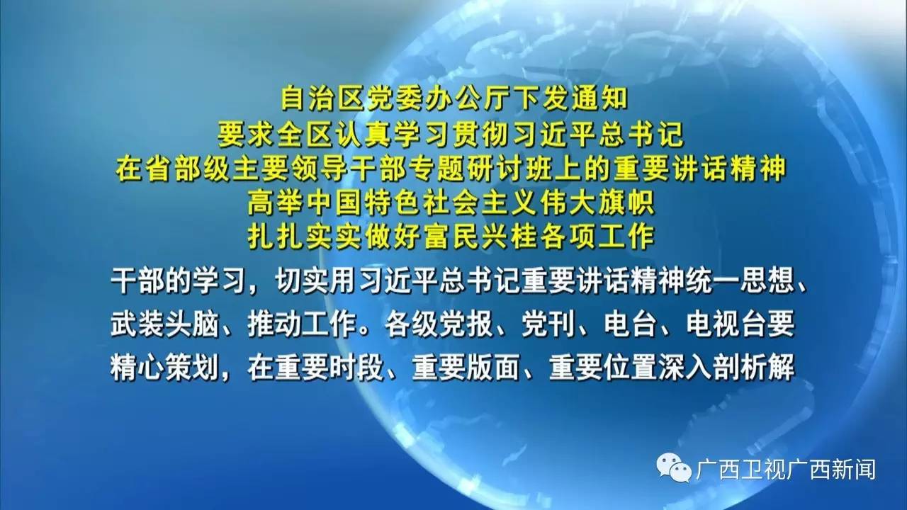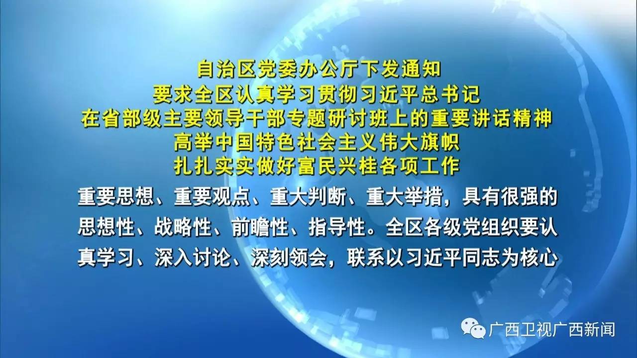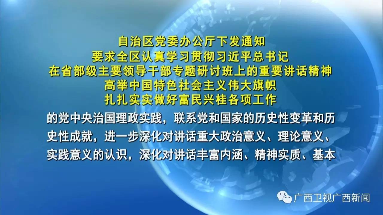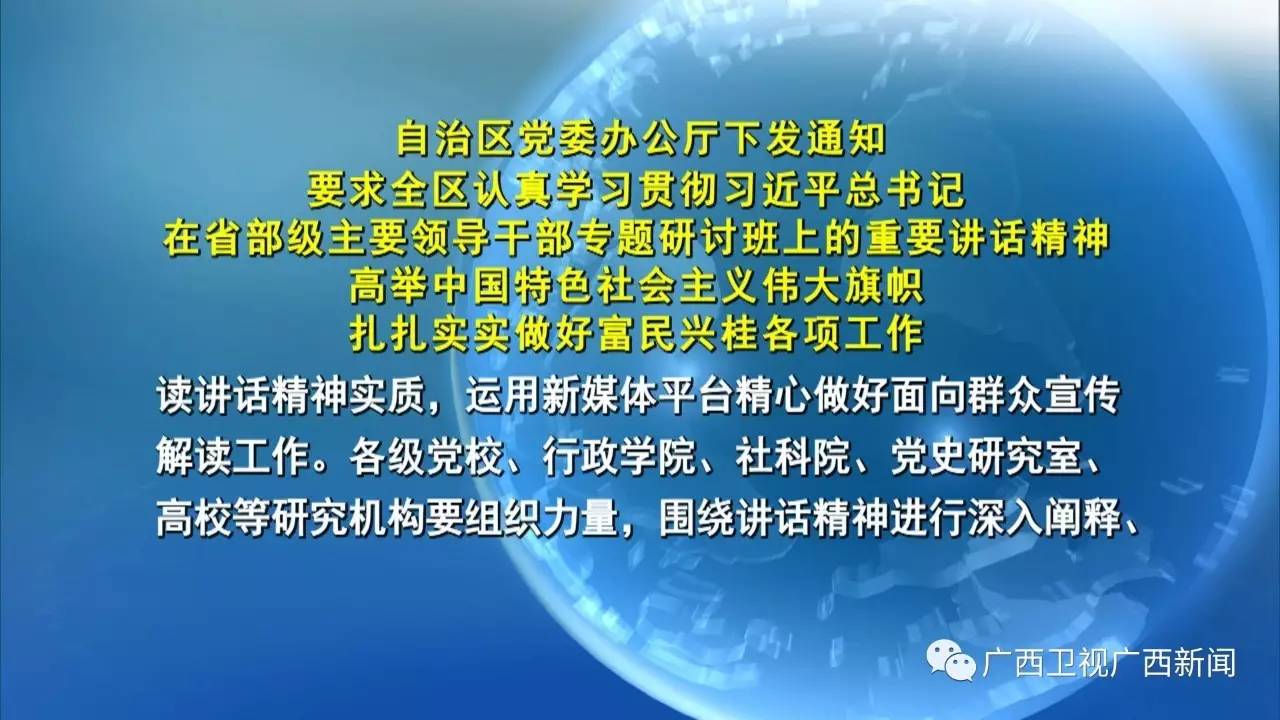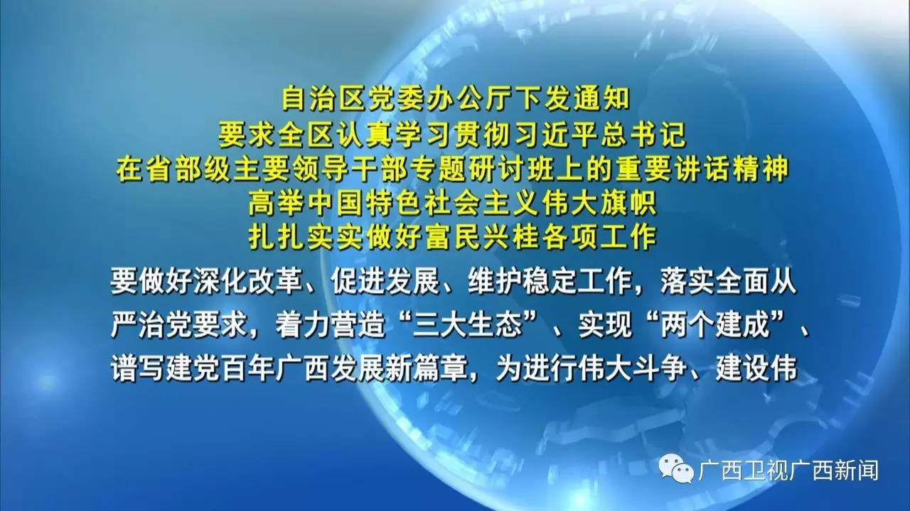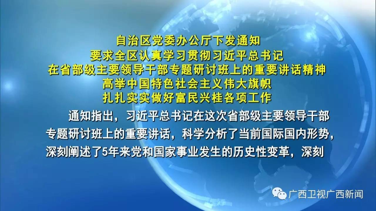 通知指出,习近平总书记在这次省部级主要领导干部专题研讨班上的重要讲话,科学分析了当前国际国内形势,深刻阐述了5年来党和国家事业发生的历史性变革,深刻阐述了新的历史条件下坚持和发展中国特色社会主义的一系列重大理论和实践问题,深刻阐明了未来一个时期党和国家事业发展的大政方针和行动纲领,提出了一系列新的重要思想、重要观点、重大判断、重大举措,具有很强的思想性、战略性、前瞻性、指导性。全区各级党组织要认真学习、深入讨论、深刻领会,联系以习近平同志为核心的党中央治国理政实践,联系党和国家的历史性变革和历史性成就,进一步深化对讲话重大政治意义、理论意义、实践意义的认识,深化对讲话丰富内涵、精神实质、基本要求的认识,切实增强政治意识、大局意识、核心意识、看齐意识,增强维护核心的思想自觉和行动自觉,始终在思想上政治上行动上同以习近平同志为核心的党中央保持高度一致,高举中国特色社会主义伟大旗帜,牢固树立中国特色社会主义道路自信、理论自信、制度自信、文化自信,始终沿着正确方向胜利前进。