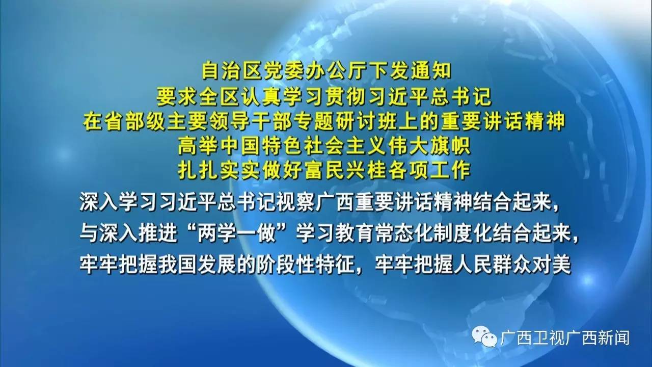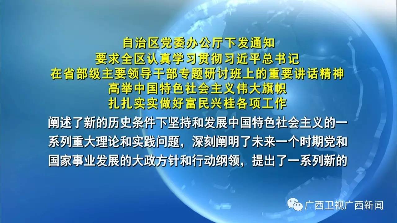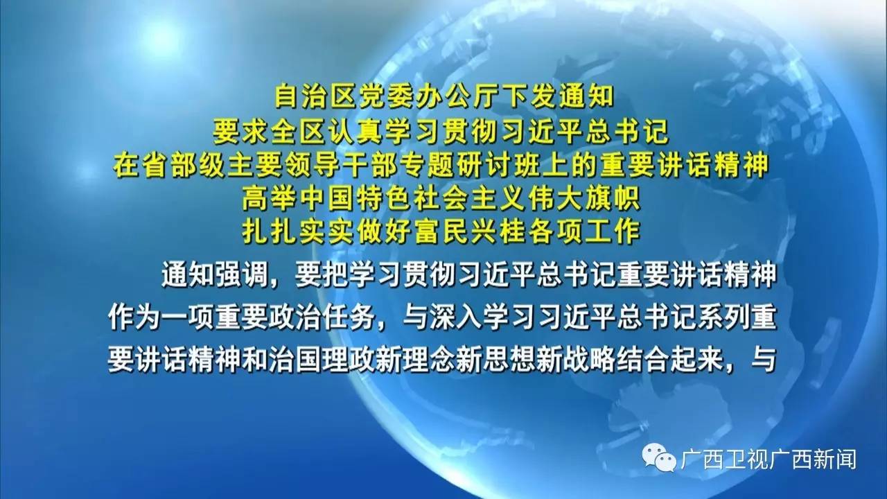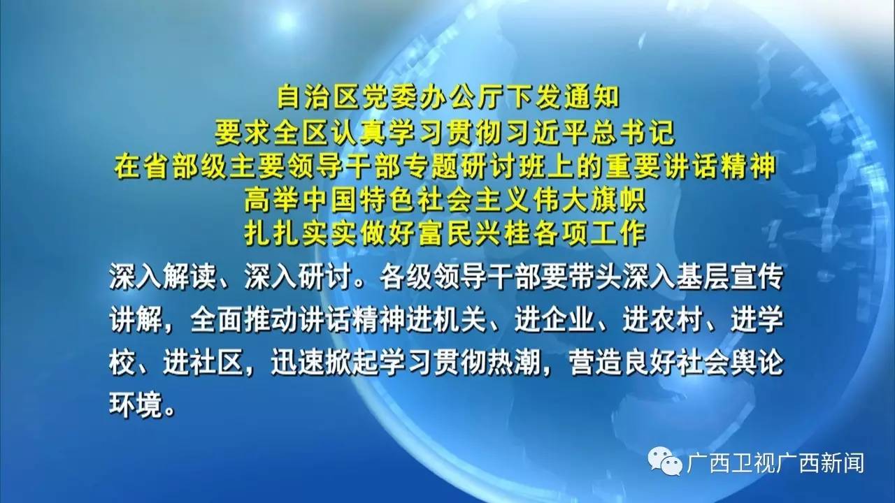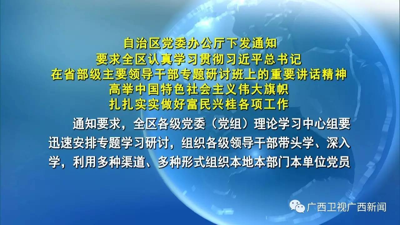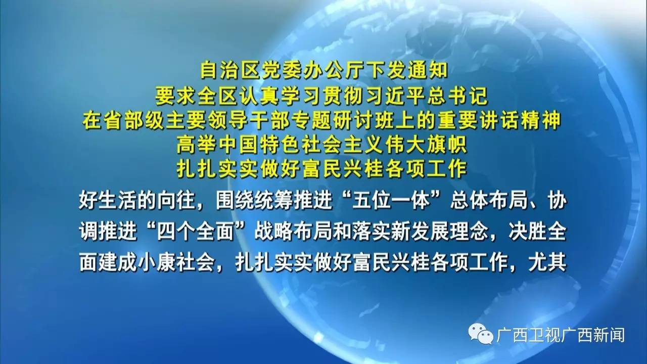 通知指出,习近平总书记在这次省部级主要领导干部专题研讨班上的重要讲话,科学分析了当前国际国内形势,深刻阐述了5年来党和国家事业发生的历史性变革,深刻阐述了新的历史条件下坚持和发展中国特色社会主义的一系列重大理论和实践问题,深刻阐明了未来一个时期党和国家事业发展的大政方针和行动纲领,提出了一系列新的重要思想、重要观点、重大判断、重大举措,具有很强的思想性、战略性、前瞻性、指导性。全区各级党组织要认真学习、深入讨论、深刻领会,联系以习近平同志为核心的党中央治国理政实践,联系党和国家的历史性变革和历史性成就,进一步深化对讲话重大政治意义、理论意义、实践意义的认识,深化对讲话丰富内涵、精神实质、基本要求的认识,切实增强政治意识、大局意识、核心意识、看齐意识,增强维护核心的思想自觉和行动自觉,始终在思想上政治上行动上同以习近平同志为核心的党中央保持高度一致,高举中国特色社会主义伟大旗帜,牢固树立中国特色社会主义道路自信、理论自信、制度自信、文化自信,始终沿着正确方向胜利前进。
