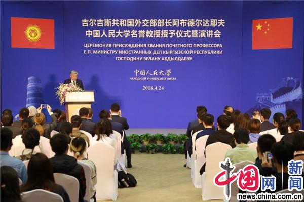 中国网新闻4月25日讯 (记者王月博)4月24日,吉尔吉斯共和国外交部部长阿布德尔达耶夫中国人民大学名誉教授授予仪式暨演讲会在北京举行。阿布德尔达耶夫表示,今年恰逢改革开放40周年,数十年来中国的发展举世瞩目,中国的成就也令世界叹为观止,中国的发展影响着世界的发展进程。