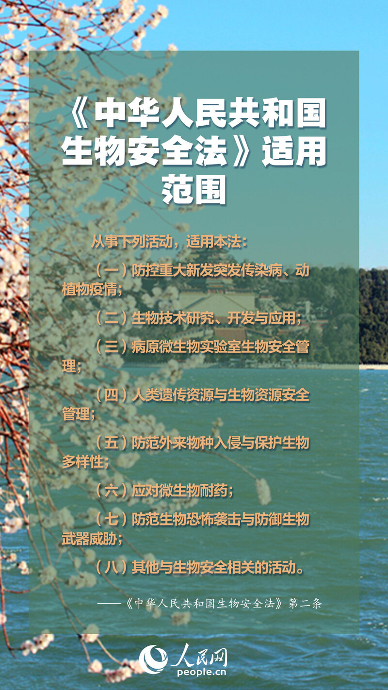 生物安全法4月15日起施行,这是生物安全领域的一部基础性、综合性、系统性、统领性法律,它的颁布和实施起到一个里程碑的作用,标志着我国生物安全进入依法治理的新阶段。