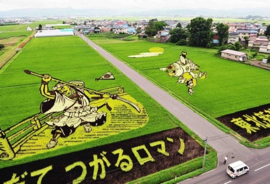 日本田舍馆村,令人叹为观止的日本稻田画。与麦田怪圈一夜“压制”成形不同,日本的稻田画是人们花费几个月的时间“种”出来的。