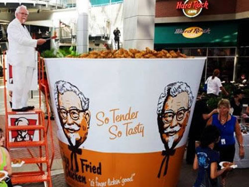 在庆祝肯德基成立70周年时制作的这个重2493.35吨的炸鸡位于路易斯维尔,是世界上最大份的炸鸡。