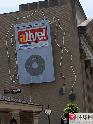 出现在俄亥俄州哥伦布Unizan银行墙壁上的这个iPod长25英尺,是世界上最大的iPod播放器。这个播放器可以播放音乐,是专为哥伦比亚在线而制作的。会播放本地的音乐或娱乐生活。