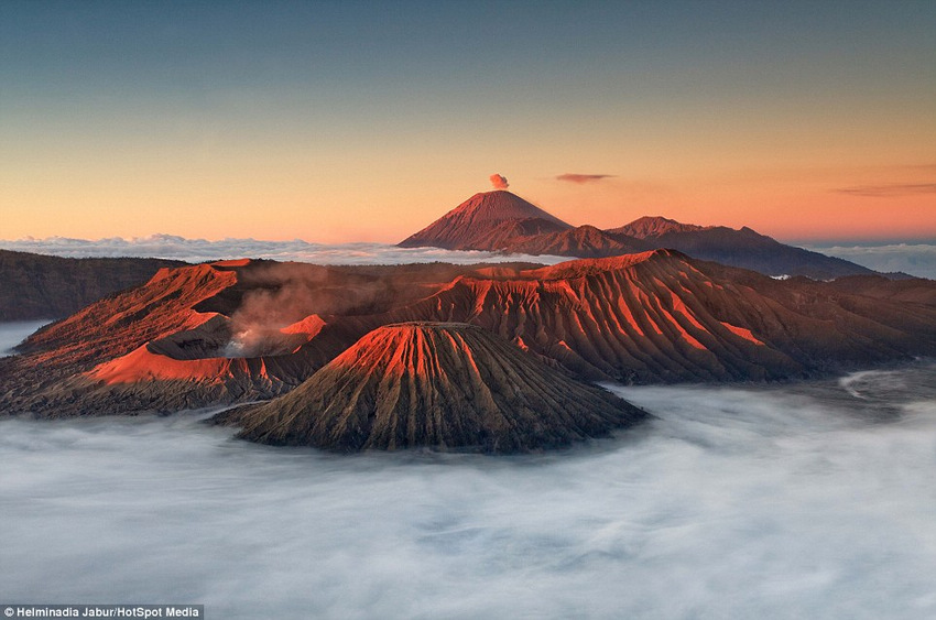【环球网综合报道】英国《每日邮报》5月7日刊登了一组照片,展现了婆罗摩火山(Mount Bromo)不断喷涌鲜艳的猩红色烟雾的画面。报道称,这番超凡脱俗的壮观景象在这片荒凉的沙海中更加引人入胜,这里每年都吸引着成千上万的游客前来感受这激动人心的景象。