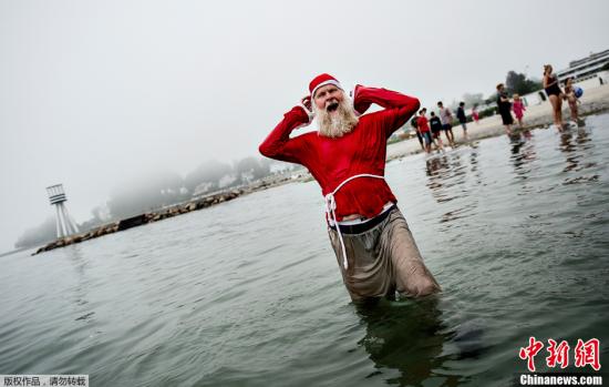 圣诞老人们在贝尔维尤海滩集体游泳,标志着本届大会的开幕。大会将持续到7月24日。