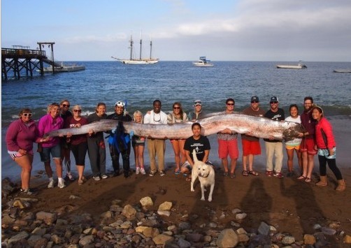 这条长达18英尺的皇带鱼,要16个大人才能举起来。卡塔利那岛海事研究所所长查斯(Jeff Chace)说,看到这条鱼时,他感到十分惊讶,这是一生难见的重大发现。