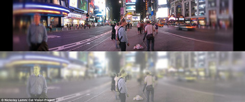 日前有艺术家尼克雷莱姆(Nickolay Lamm)通过与动物眼科诊所以及动物眼科医生的合作,最大程度上还原了猫科动物看到的影像。从莱姆的图像中可以看出,虽然猫科动物的视野很模糊,但它们可以看到将近200度的视图,而人类只能看到180度的平面视图。