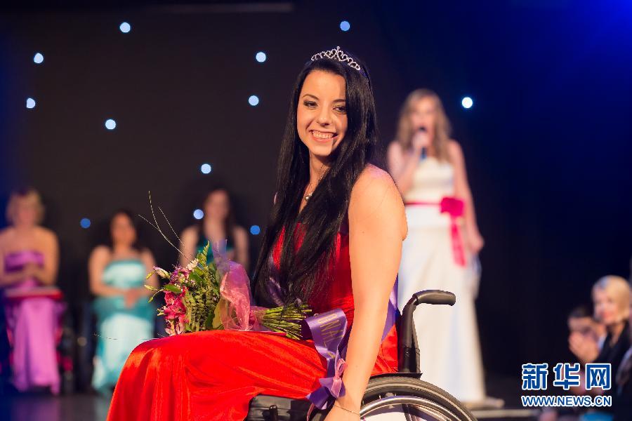 3月22日,在匈牙利首都布达佩斯,匈牙利选手凡妮·伊雷什获得2014年国际轮椅小姐选美比赛冠军。当日,共有来自6个国家(匈牙利、罗马尼亚、波黑、墨西哥、玻利维亚和乌克兰)的8名选手参加布达佩斯首届国际轮椅小姐选美比赛的决赛。 新华社发(弗尔季·奥蒂洛摄)