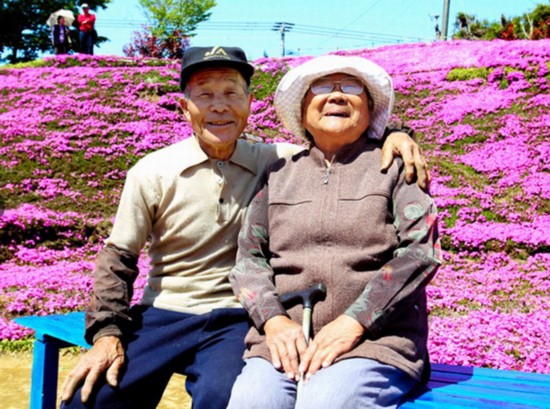 日本老人栽种2000平米芝樱 鼓励失明妻子活下去(组图)
