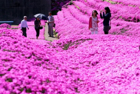 国际在线专稿:据日本《朝日新闻》4月11日报道,在日本宫崎县新富町84岁老人黒木敏幸家的庭院内,开满了粉红色的芝樱。为了目睹这一美景,日本各地游客纷纷造访,人数最多时达到每天7000人。