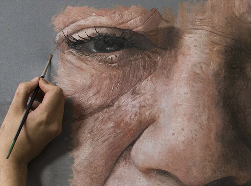 英艺术家用油绘人物肖像 皱纹毛孔清晰可见(图)