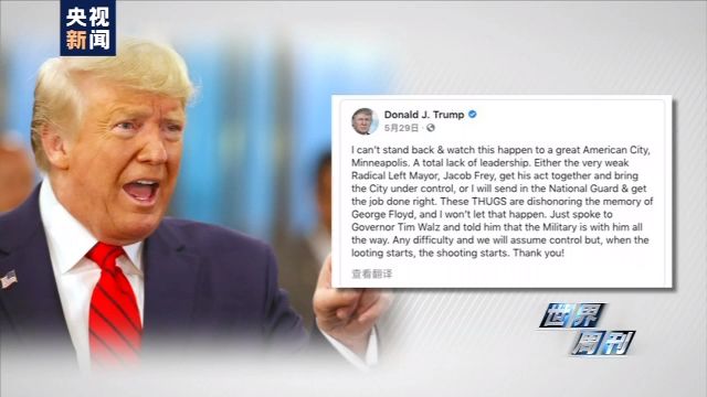 5月28日,特朗普对明尼苏达州抗议者发出警告称,“一旦抢劫发生、枪声便会响起”。