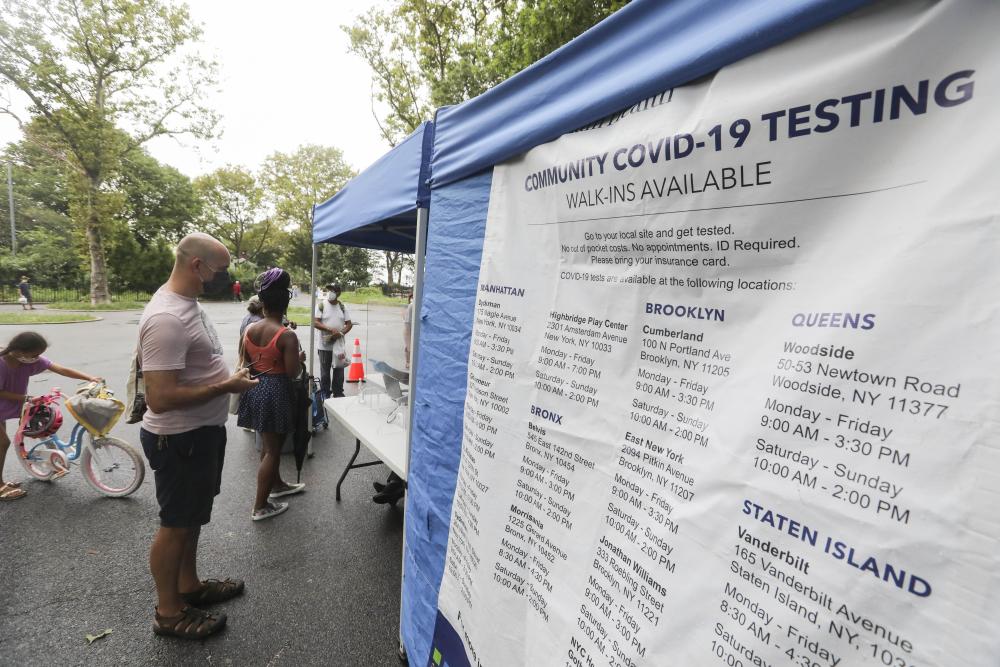 8月13日,在美国纽约日落公园,人们在一处临时新冠病毒检测点排队等待检测。(新华社记者王迎摄)