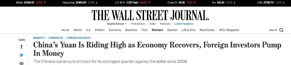 中国经济的复苏也增强了外国投资者投资中国的信心和兴趣,促使人民币升值。《华尔街日报》近日报道称,近期人民币升值主要受投资者对中国经济前景的乐观以及中国相对较高的利率影响。美国投资界人士认为,强大的中国经济是人民币走强背后的部分原因。