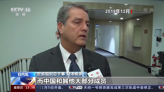 世贸组织总干事 阿泽维多(2019年12月资料画面) :很显然,至少一个成员(美国)不高兴,认为草案无法解决其提出的所有问题, 而中国和其他大部分成员都希望可以找到解决措施,愿意支持上诉机构改革草案。