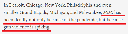 美联社在报道中评论称,2020年是“致命的一年”,不仅因为新冠肺炎疫情,还因为枪支暴力事件的激增。