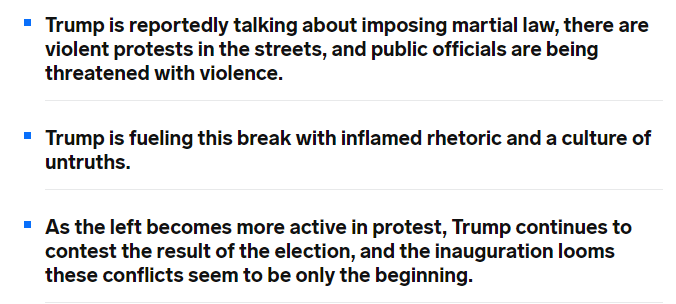美国“商业内幕”网站近日发表题为《美国正在一分为二》的分析文章指出,三个相互关联的因素造成了美国社会紧张局势的加剧和暴力的增加:总统特朗普及其盟友唤醒并煽动了助长社会对立的仇恨情绪;政府培育了一种谎言文化;被误导的美国人敢于挑战政府的合法性,并拿起武器走上街头。