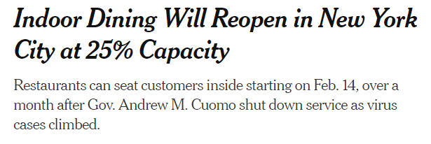 在疫情尚未得到有效控制、变异病毒又增添不少变数的情况下,美国多地却接连上演解禁的闹剧。当地时间11日,俄亥俄州宣布取消宵禁,伊利诺伊州芝加哥市及内华达州宣布将放开餐厅就餐人数限制;12日,明尼苏达州宣布将取消餐厅就餐相关禁令,纽约市和波特兰市也于近日部分放开了室内就餐的限制。