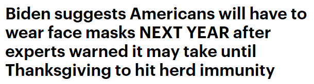 美国总统拜登11日在视察位于马里兰州的国家卫生研究院时,再次敦促民众佩戴口罩,并称戴口罩是一种爱国责任感的表现。此外,拜登在讲话中还指出,美国人一直到明年都不得不佩戴口罩,因为专家警告称,可能要到年末传统假期才会出现群体免疫。