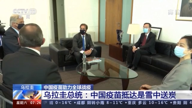 中国驻乌拉圭大使王刚表示,首批中国疫苗顺利抵乌,是两国关系史上的一件大事,生动诠释了“风雨同舟,守望相助”的人类命运共同体精神。