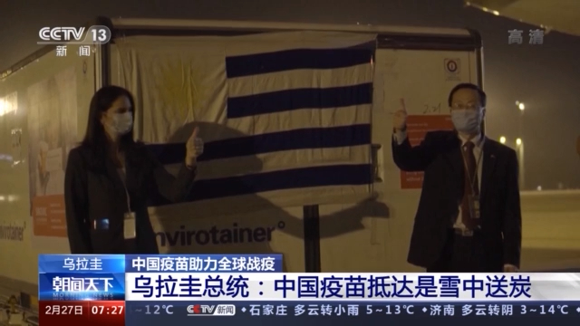乌拉圭总统拉卡列表示,25日晚运抵乌拉圭的中国科兴疫苗是乌拉圭获得的首批新冠疫苗。他代表乌拉圭政府和人民,感谢习近平主席和中国政府雪中送炭,为乌拉圭抗击疫情作出重要贡献。