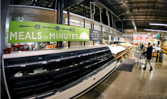 △为应对极端天气,得州超市货架被一扫而空,民众生活受到严重影响。