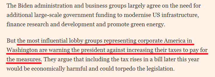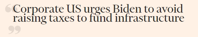 有媒体称,拜登政府试图通过对企业和富人增加税收来筹措基建资金,但此举引起了相关方的明确反对。华盛顿最具影响力的美国企业界游说团体早就警告总统拜登,不要试图通过增税手段来为他承诺的基建投资提供资金。