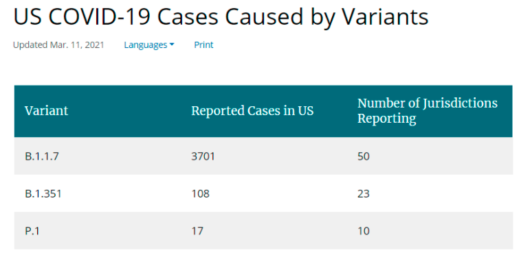 美国疾控中心(CDC)公布的最新数据显示,截至11日,全美共报告变异新冠病毒感染病例3826例,其中多达3701例感染了在英国发现的B.1.1.7变异毒株。