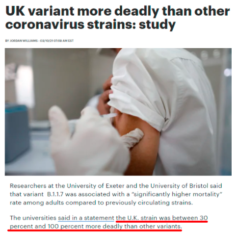 美国《国会山报》网站报道称,《英国医学杂志》发表的一项最新研究成果表明,英国发现的变异毒株在成年人中导致了“明显更高的死亡率”,致死率比其他变异毒株高出30%—100%。这一结论也引起了美国公共卫生专家的警惕。