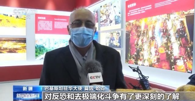 巴基斯坦驻华大使 莫因·哈克:今天看了这个展览,我对新疆历史有了一定的了解,尤其是对中国政府对反恐和去极端化斗争有了更深刻的了解。巴基斯坦一直深受恐怖主义危害,我们会全力支持中国政府打击恐怖主义。