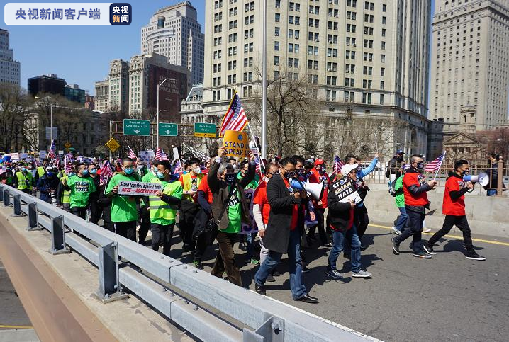 当地时间4月4日,美国纽约市举行大规模反歧视亚裔抗议活动,现场约上万人参加。