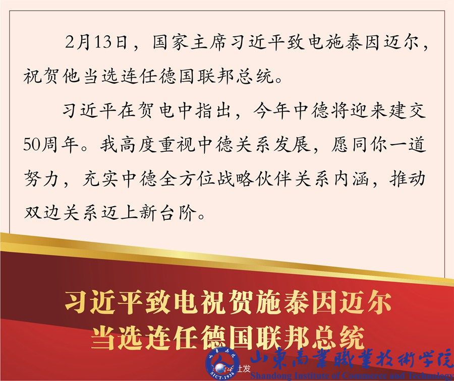 新华社北京2月13日电 2月13日,国家主席习近平致电施泰因迈尔,祝贺他当选连任德国联邦总统。