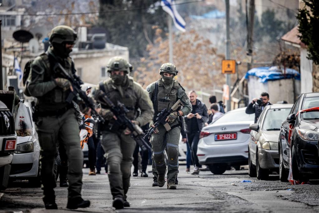 1月28日,安全人员在耶路撒冷老城外的枪击事件现场警戒。新华社/基尼图片社