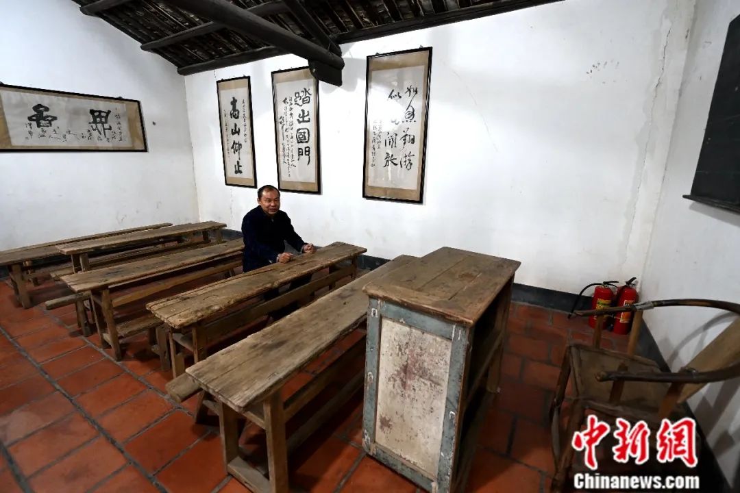 “这间铭新小学教室创建于1890年,林语堂6岁至10岁是在这间小学堂接受启蒙教育的。”带着记者参观林语堂故居的林秋辉说,林语堂的父亲不仅是一位牧师,还是这间小学堂的教师。“林语堂读书时坐的位置是最好的,坐在二排二号。”