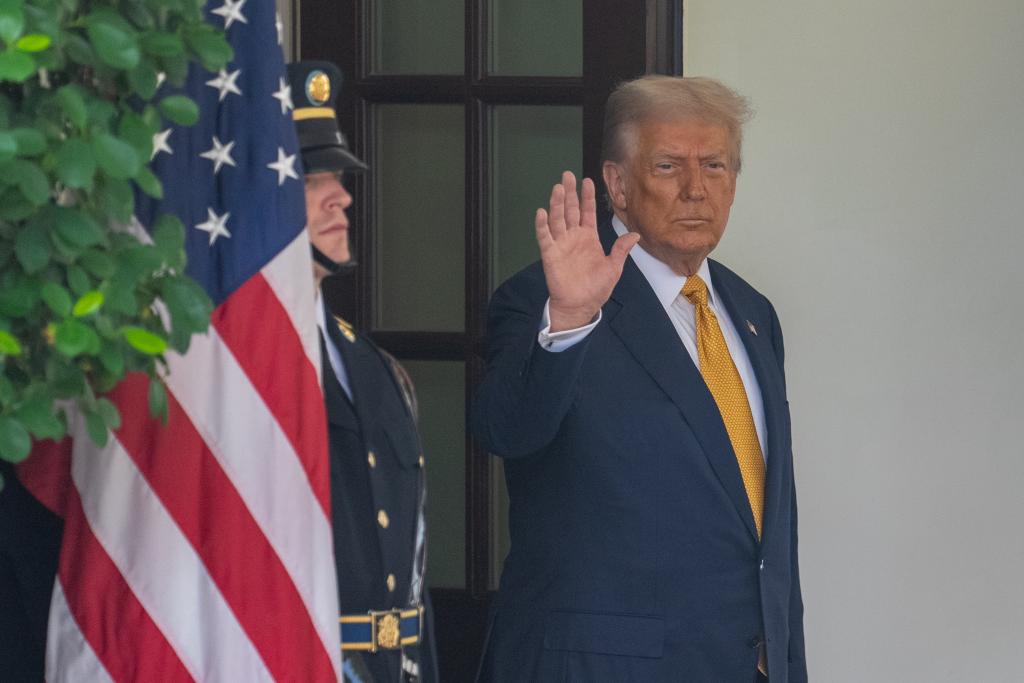 7月22日,美国总统特朗普在华盛顿白宫准备迎接到访的菲律宾总统马科斯。新华社记者胡友松摄