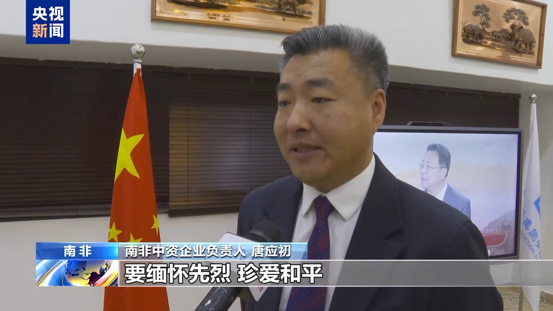 南非中资企业负责人 唐应初:历史告诉我们要缅怀先烈、珍爱和平。只有团结才能胜利,只有合作才能共赢。作为海外建设者,今天我们胸怀祖国,奋战一线。用实际行动证明,中国建设者攻坚克难、敢打必胜。