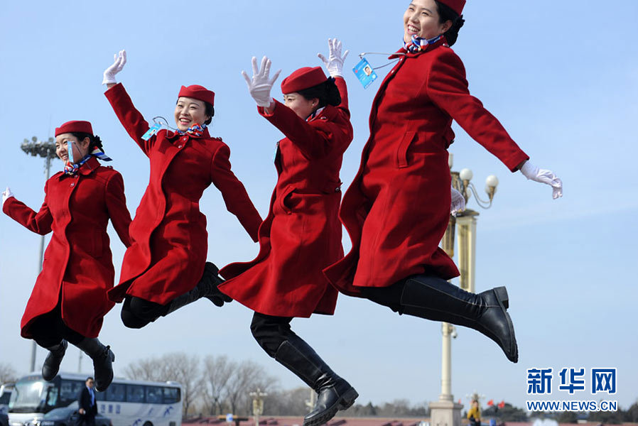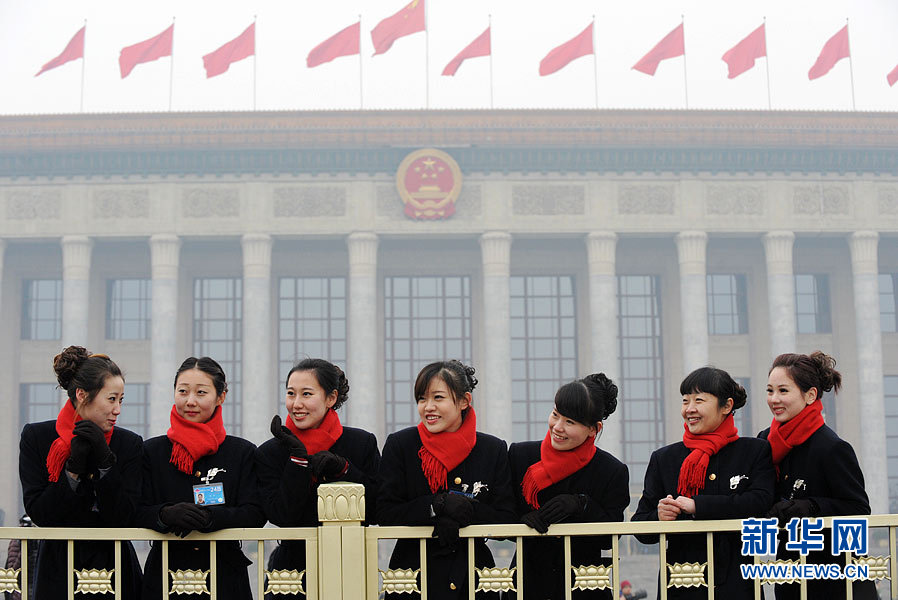 两会直击:大会堂前的靓丽风景线。新华网 陈竞超 摄