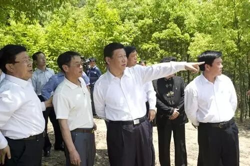 图为:2015年5月11日习近平在黔南州贵定县甘溪林场叮嘱干部职工要强化生态建设。