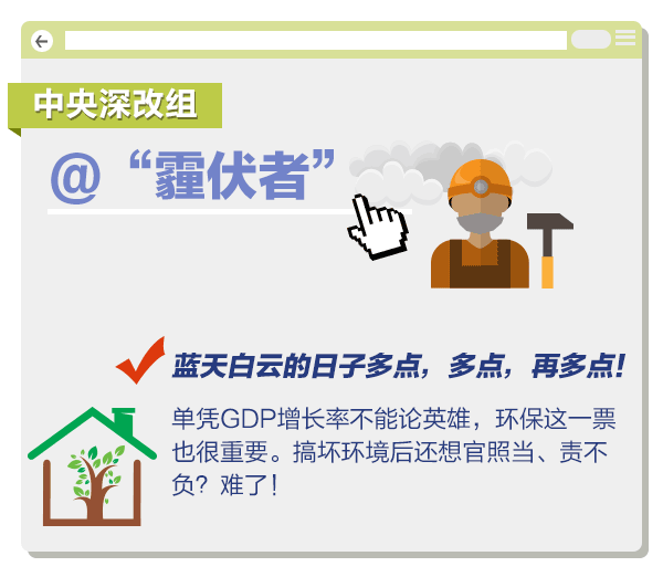 如今,再只以GDP增长率论英雄?环保这一票占有很大权重!再想搞坏环境后,官照当、责不负?不论是否已调离、提拔或者退休,都必须严肃追责。保护生态环境,中央深改组这些举措的威慑力不言而喻。