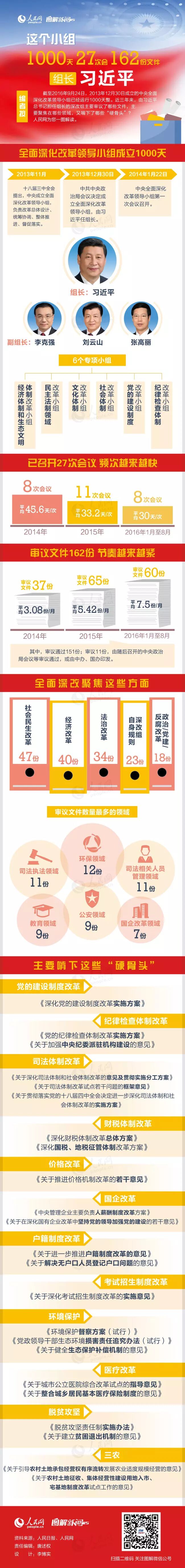 作为组长,习近平坐镇指挥,亲自谋划、协调、督促各项改革进程。言出必行,过去的1000天里,中央深改组交出了一份漂亮的改革成绩单。