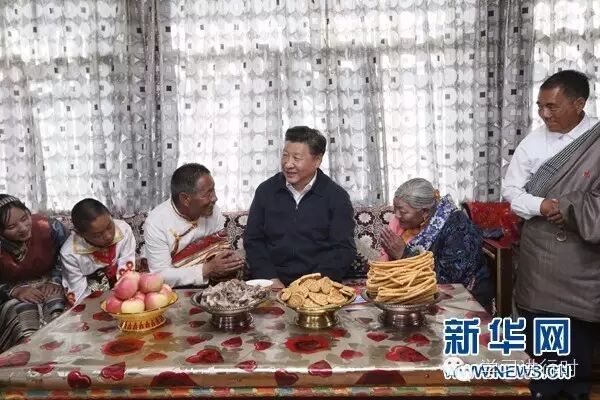 2016年8月22日下午,习近平在海西蒙古族藏族自治州格尔木市唐古拉山镇长江源村藏族村民申格家中同一家人亲切交谈。 新华社记者 兰红光 摄
