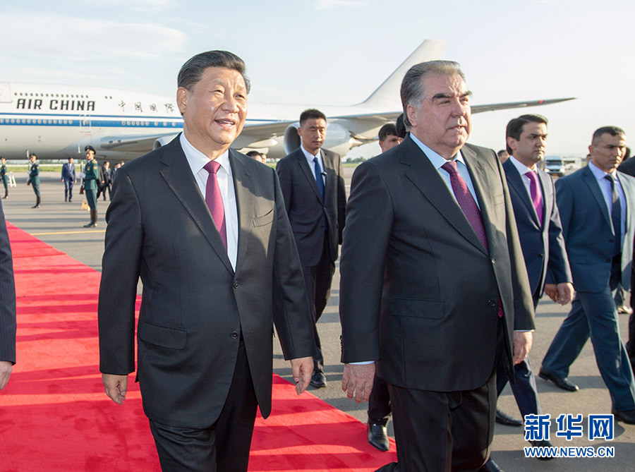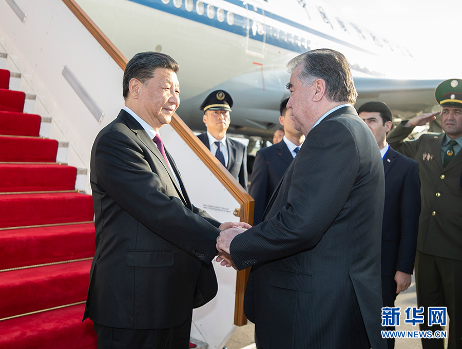 习近平抵达杜尚别开始出席亚洲相互协作与信任措施会议第五次峰会并对塔吉克斯坦共和国进行国事访问