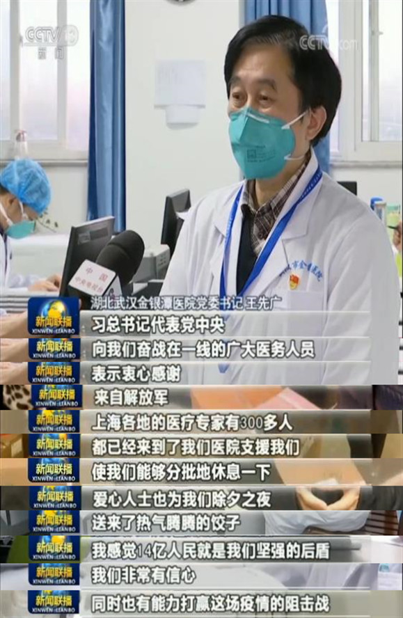 央视网消息(新闻联播):疫情就是命令,防控就是责任。习近平总书记在1月25日中共中央政治局常务委员会会议上的重要讲话,发出了打赢疫情防控阻击战的战斗号召,在寒冬里为亿万人民带来信心与力量。目前,各地方各部门争分夺秒救治感染患者,强化防控措施落实。广大干部群众众志成城,全力以赴抗击疫情。